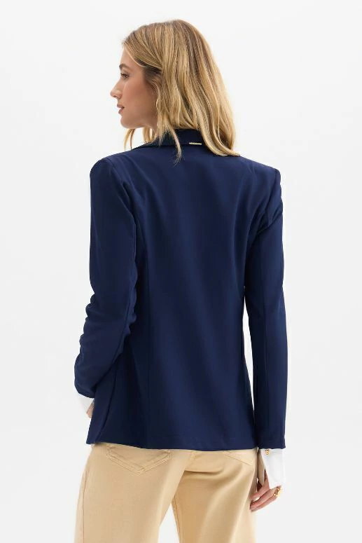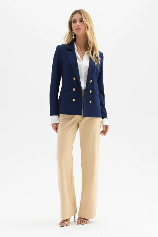 Blazer Feminino Flor de Lis Solto em Alfaiataria com Botões Dourados