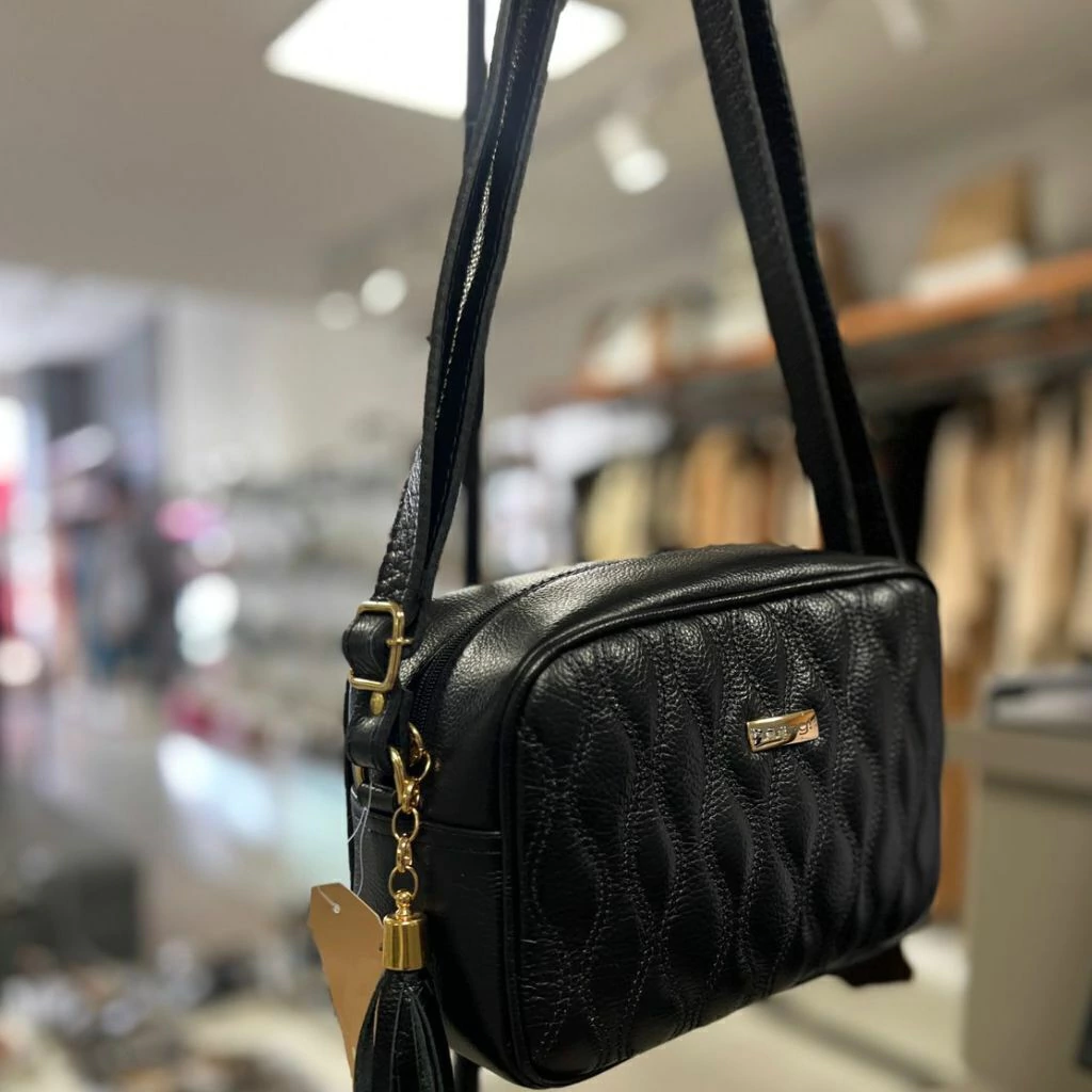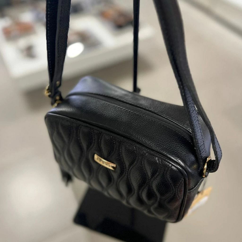 BOLSA FEMININA EM COURO COM DETALHE EM MATELASSE M