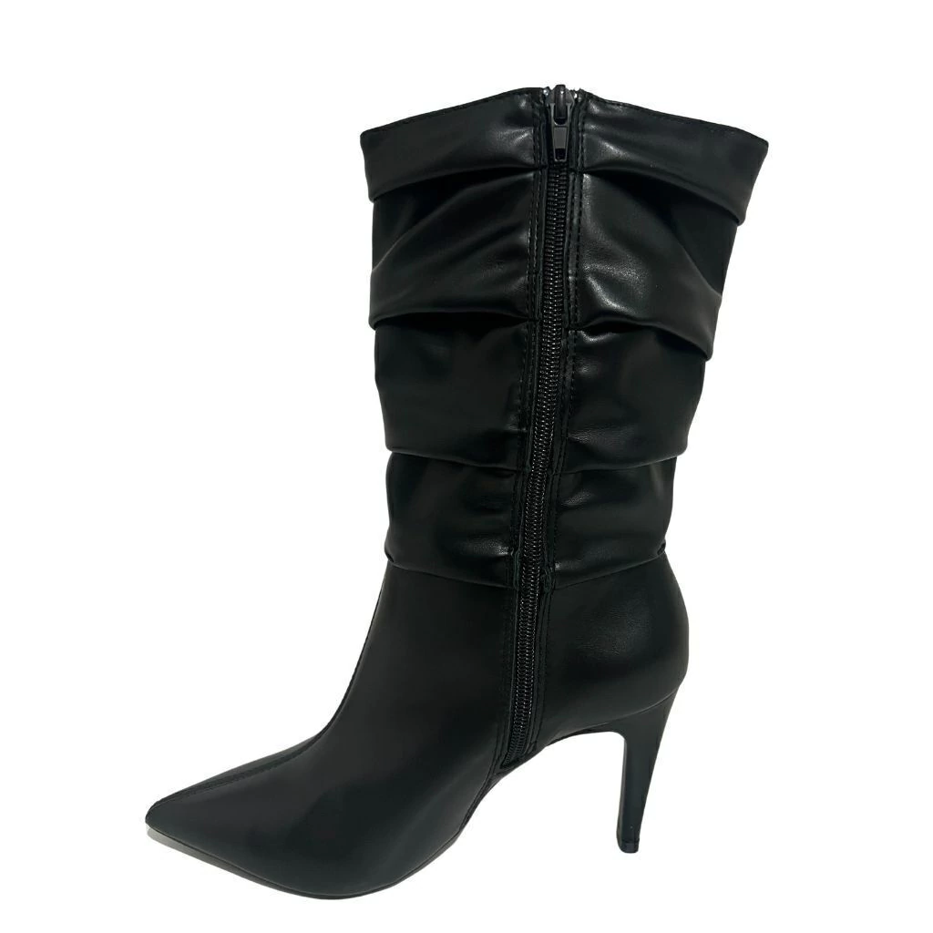 Exale elegância e estilo com a bota feminina de cano médio, salto fino e design drapeado. Este modelo combina sofisticação com um toque moderno, perfeito para quem busca um visual impactante e cheio de personalidade. Com um acabamento impecável e materiais de alta qualidade, oferece conforto e durabilidade para te acompanhar em qualquer ocasião especial ou no dia a dia com muita classe.