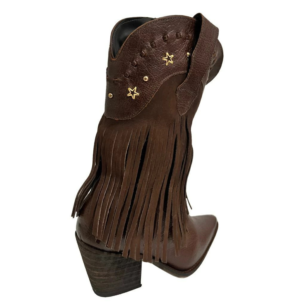 Fabricada com couro legítimo de alta qualidade, esta bota oferece durabilidade e conforto incomparáveis. O bico fino e o salto médio proporcionam um visual sofisticado, enquanto o cano médio com franjas garante um estilo único e marcante. Ideal para compor looks casuais ou para ocasiões especiais, esta bota é perfeita para quem busca autenticidade e exclusividade.