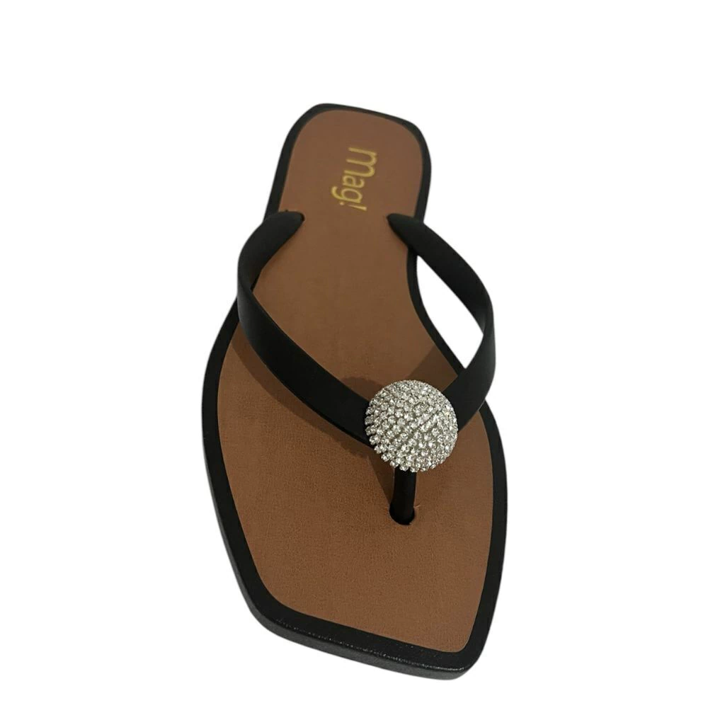 Chinelo feminino com detalhe em strass, ideal para ocasiões casuais elegantes. Com brilho delicado, o strass é aplicado nas tiras, conferindo um toque sofisticado e moderno ao modelo. Perfeito para quem busca conforto com estilo.