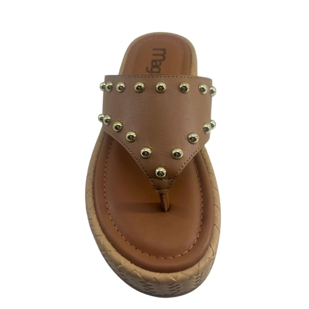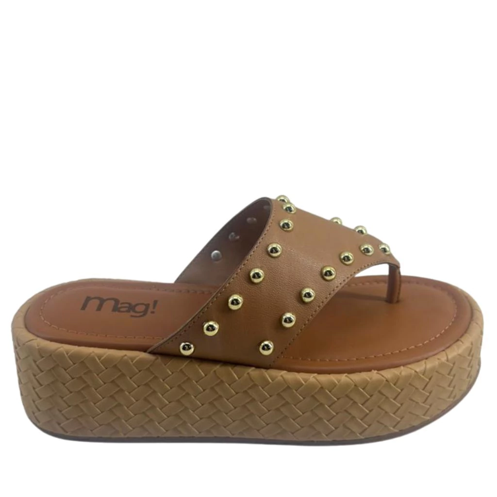 As esferas metálicas aplicadas nas tiras adicionam um toque fashion e elegante, elevando o look de forma sutil. O modelo garante estabilidade ao caminhar, além de proporcionar conforto para o uso prolongado, sendo perfeito para o dia a dia ou produções casuais mais elaboradas.
