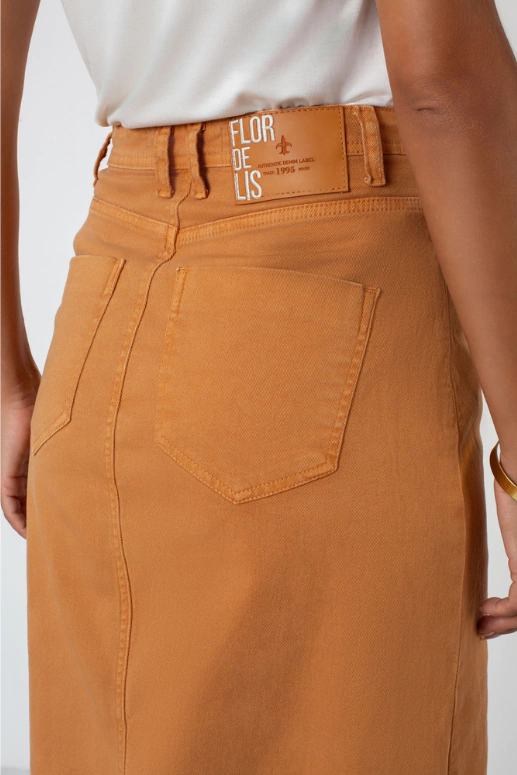 Saia Midi Jeans Color Terracota com Fenda Frontal