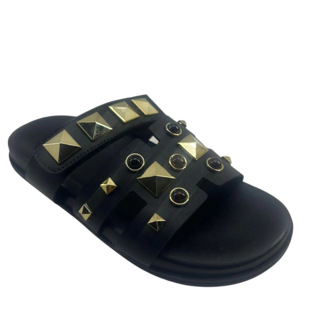 A Sandália Papete Feminina com Palmilha Comfy e Enfeites nas Tiras une conforto extremo e estilo moderno em um único modelo. Com design atual, suas tiras largas recebem aplicação de enfeites metalizados, que adicionam personalidade e um toque fashion à peça.