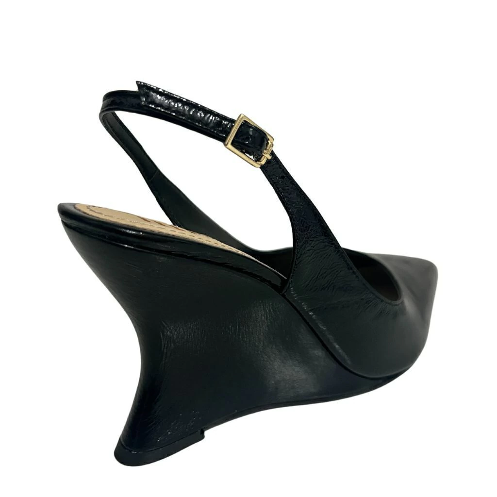 Descubra o sapato perfeito para ocasiões especiais e eventos formais! Este sofisticado sapato de salto alto apresenta um design moderno e único. Com acabamento em preto e detalhes elegantes, ele combina estilo e conforto.
